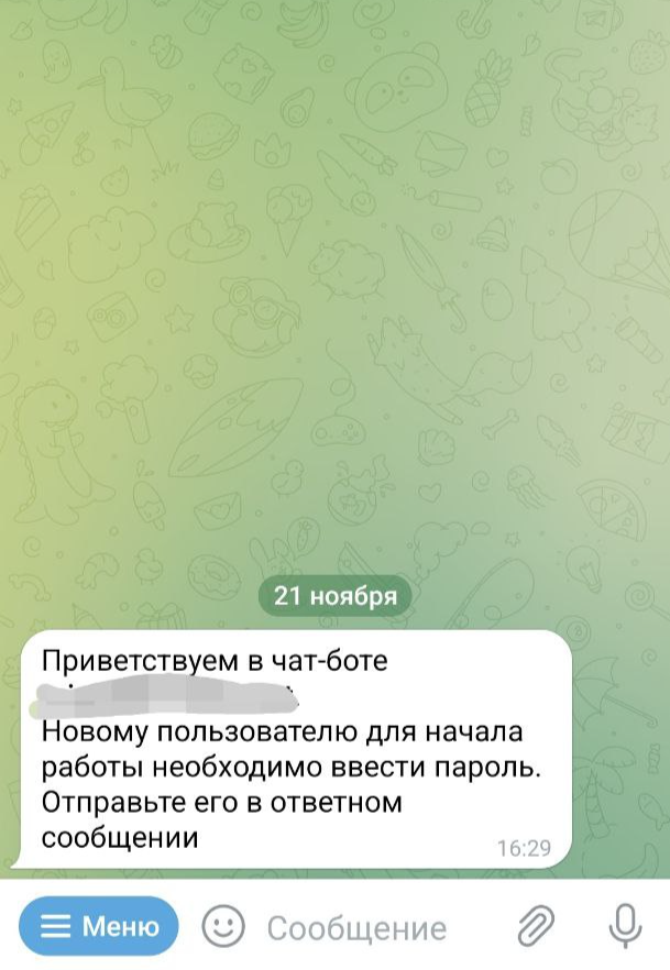 Бот в первом сообщении спрашивает какой-то пароль. Что ему ответить?